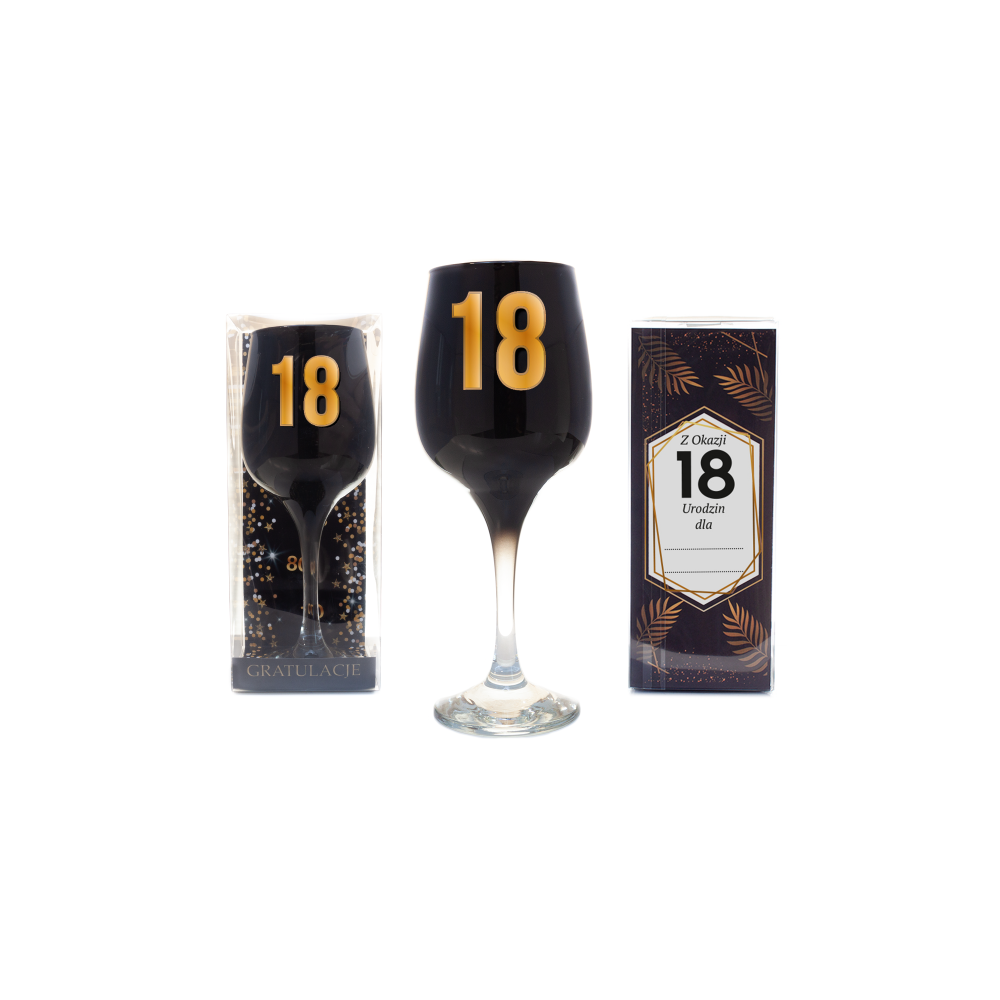 Kieliszek urodzinowy do wina czarny w ozdobnym opakowaniu - Z Okazji 18